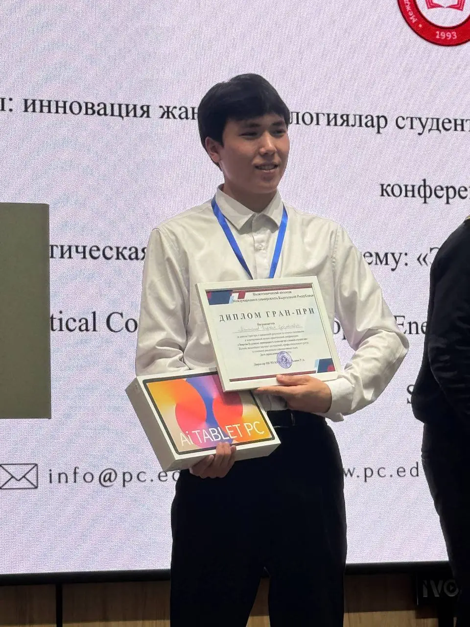 Манапбаев Барсбек, Бишкек техникалык колледжинин 203-3-ПО тобунун студенти, 2025-жылдын 19-декабрында Кыргыз Республикасынын Эл аралык университетинин Политехникалык колледжинде өткөрүлгөн “Энергиянын келечеги: студенттердин көз карашындагы инновациялар жана технологиялар” аттуу межвуздук илимий-практикалык конференцияда Гран-При дипломун алды.